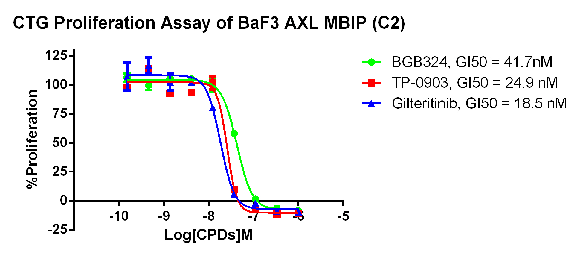 Figure 2. CTG Proliferation Assay of BaF3 AXL MBIP (C2).