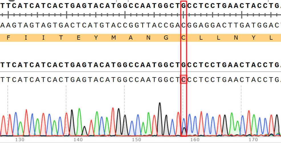 Figure 3:Gene Edited BTK[C481S] Isogenic Cell-測序結果