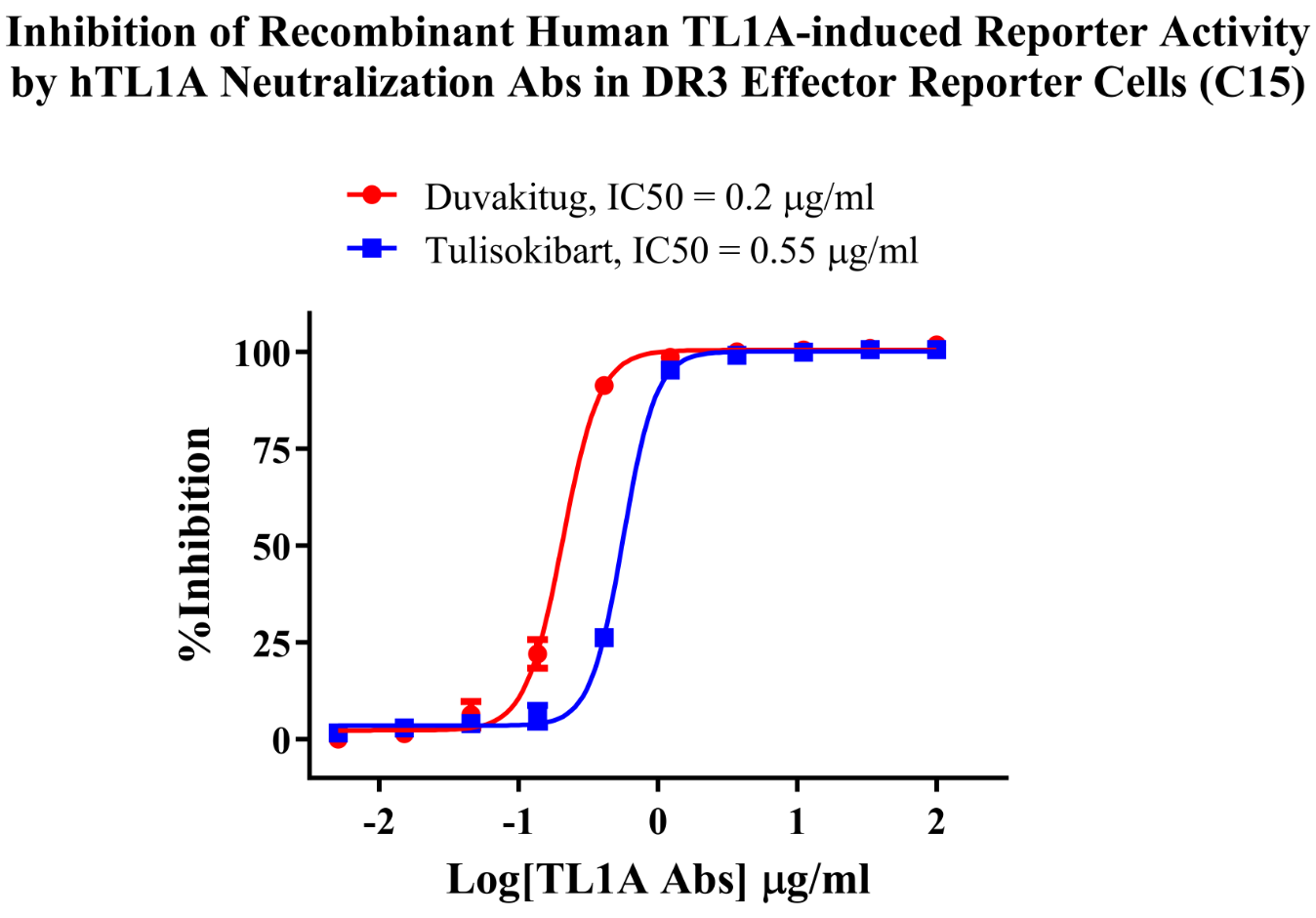 Figure 5. Inhibition of Recombinant Human TL1A-induced Reporter Activity by hTL1A Neutralization Abs in  DR3 Effector Reporter Cells(C15).